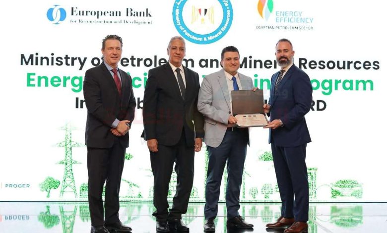 كتب هاني الصغير… قام الدكتور علاء البطل وكيل أول وزارة البترول بتكريم المهندس شادي أسامه ضمن تكريم اوائل برنامج كفاءة الطاقة للقيادات الشابة والمتوسطة المنظم من خلال وزارة البترول و الممول بمنحة من الإتحاد الأوروبي، وذلك علي هامش إطلاق وزارة البترول البرنامج التدريبي لكفاءة استخدام الطاقة بالتعاون مع الاتحاد الأوروبي لإعادة الإعمار والتنمية.