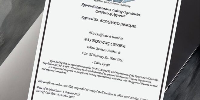 الطيران المدني تعتمد تقديم PASخدمات التدريب الفني علي صيانة طائراتها