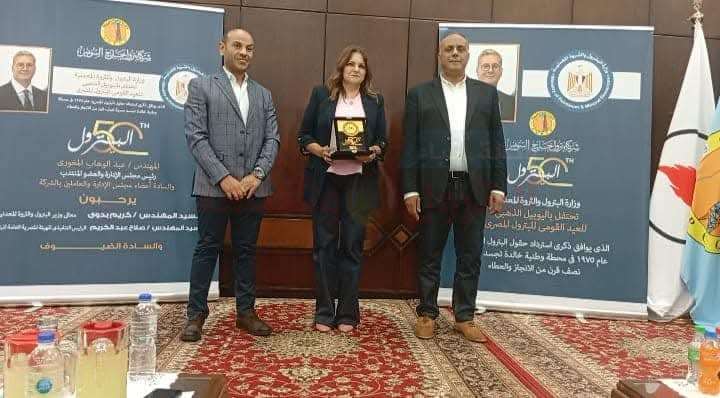 تكريم إيمان عبد الحفيظ عيد خلال احتفالات عيد البترول الخمسين
